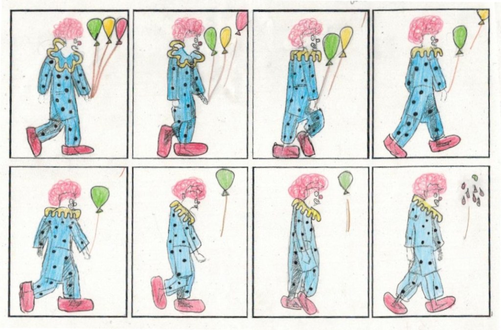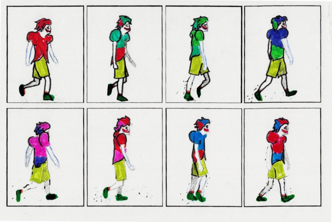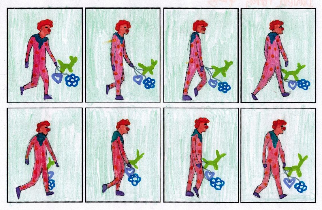 Descargaos el dibujo en vuestro ordenador o móvil (después de clickar en él para que se vea grande). Y separadlos en fotogramas individuales usando una app de dibujo. Después guardáis la imagen en vuestro ordenador con la opción «export»